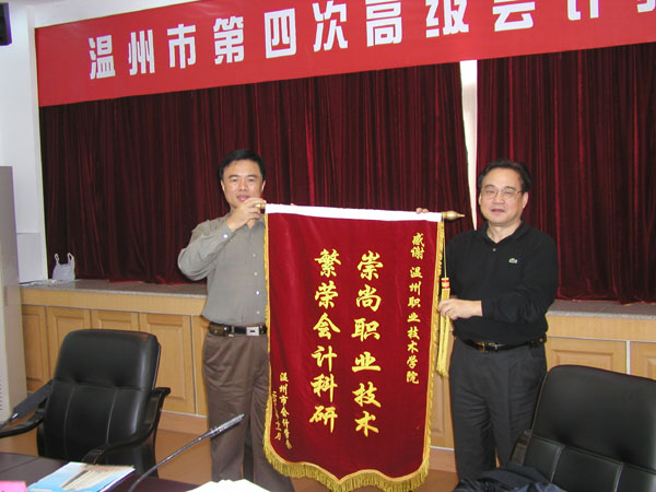 11月21日,温州市第四次高级会计师学术研讨会在我院行政楼三楼会议室召开,来自市、县50多名高级会计师及财会系部分教师参加了会议。会议由温州市会计学会常务副会长兼秘书长王家琪同志主持,温州职业技术学院党委副书记倪集崇同志在会上介绍了学院及财会系的情况,本次会议围绕第三次学术研讨会(南雁会议)确定的重点课题进行研讨,11篇论文在会上交流发言,并通报东南地区会计学会第十八次学术研讨会和温州市科协第十届科技成果评选情况,财会系陈建松、李蓓蕾、程新、付强四位教师撰写的《关于电子商务与网络信息系统的研究》一文也在会上作交流。