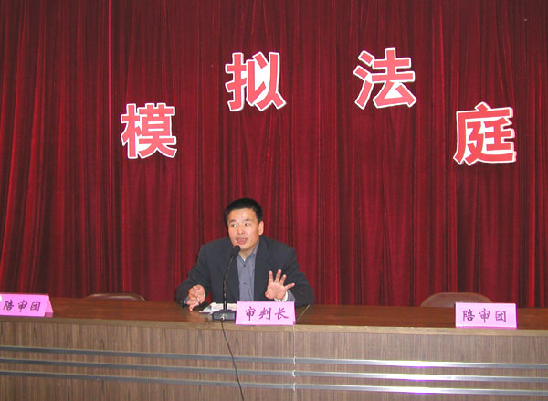 11月30日晚,社科部徐红专副教授在营销0301班和营销0302班的法律课中率先把“模拟法庭”的实践课引入了教学环节。这堂课让同学们通过课外收集有关法律案例,并了解法庭审判程序,然后在课堂上让同学自编自导法庭审判过程。这堂课之前,两个班级同学做了认真准备,对案件的采纳,法庭有关人物的扮演都做了细致的安排。课上,同学们审理了一起“吴鹏故意伤害罗某致死”的案件。