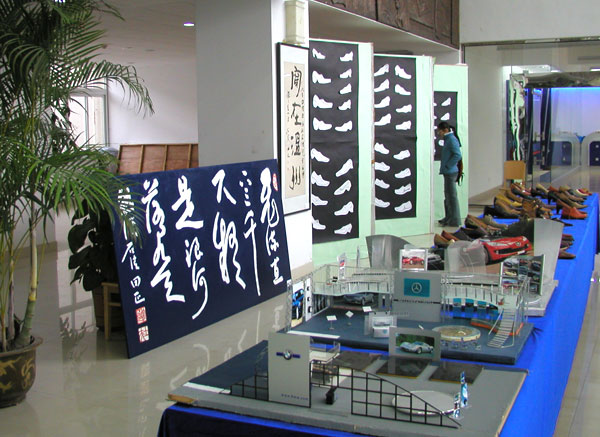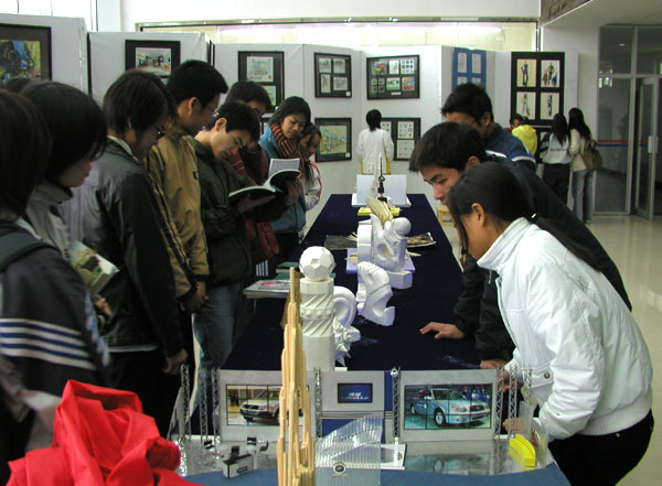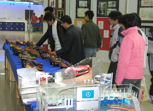 12月11日下午,我院轻工学院在图书信息中心大厅举行了首届师生艺术设计作品展。本次共展出了我院轻工学院师生优秀作品两百多幅,有油画作品、书法作品、鞋样作品、服装设计作品、石膏模型、装潢设计样稿等。