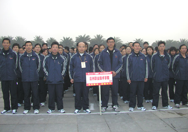 2004年1月1日,迎着新年第一缕曙光,我院80名教职工统一着装,迈着矫健的步伐参加了由市人民政府主办,市体育局、教育局、总工会等11家单位联合承办的温州市第22届元旦健身跑活动。