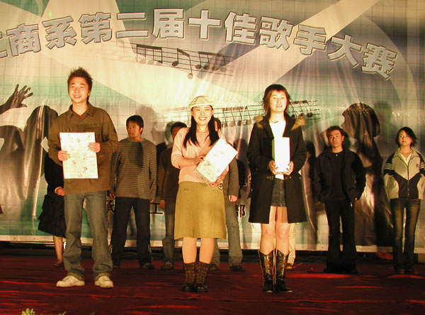 3月15日晚,工商率先启用体育馆楼前的露天舞台,摆擂举行“工商系第二届十佳歌手比赛”。歌手们纷纷亮出歌喉,精彩场面此起彼伏,首首好歌好曲在校园的夜色中久久回荡。歌手们实力接近,比赛难解难分,最终由商务0301班李晓、旅游0301 班陈芳、国贸0301班朱天阳分别夺得比赛的冠、亚、季军。据了解,他们将代表工商系“出战”校园十佳歌手比赛。