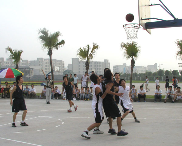5月9日,我院传统体育赛事——第三届篮球比赛开锣。由各系挑选的篮球高手将分组展开捉对厮杀。比赛为火红的五月更添了几分动感的色彩。在首日进行的开幕赛中,人文系以1分的优势险胜建工系男篮,取得了开门红。另一个场地上却出现了另一番景象,实力强劲的机械系以压倒性的优势击败轻工学院男篮队。