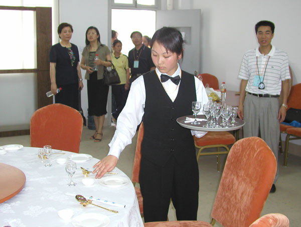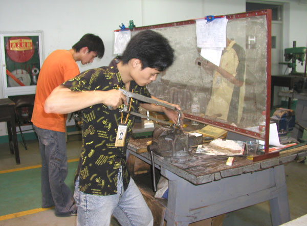 在金工车间,有同学挥汗如雨,加工机械产品;在服装裁剪室,有同学坐在缝纫机前,赶制衣服;在计算机房,有同学在冥思苦想,创作电子作品;在电工检测室,有同学在忙着检测电路;在模拟餐厅,有同学在斟茶倒酒;在艺术表演室,有同学在用舞姿展现艺术的魅力……