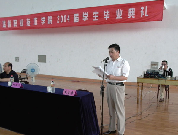 6月21日上午,我院2004届毕业典礼在体艺馆隆重举行。学院领导周锦成、倪集崇、吴金法、夏晓军、兰玉景、朱金荣、陈维彬出席典礼。党委书记、院长周锦成作了热情洋溢的讲话。他肯定了2004届毕业生在校期间所取得的成绩,既为学院的事业发展做出了贡献,也为踏上社会奠定了坚实的基础。他勉励同学在今后的人生道路中要学会做人、学会做事,要脚踏实地做好每一件工作,做无愧于时代的栋梁之才。他殷切希望每个毕业生能珍惜每一个工作机会,能保持与学院密切联系,能经常回母校看看学校的发展变化。