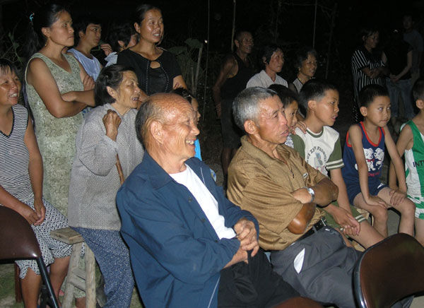 乡村孩子们纷纷上台展示歌喉,为晚会奏响了活跃的前曲。演出中,同学们自编自演的节目受到了当地村民的鼓掌与喝彩,小品《宠物诊所》、舞蹈《天竺少女》、四人唱《兄弟》等节目将演出推向一个个高潮;与此同时,乡村一老人献唱了畲族民歌,受演出气氛的感染,好几位畲族大妈们也纷纷主动上台表演畲族民歌,据说,这次畲民们能大胆上台展示是我国民族文化的挖掘与流传的一大发现。