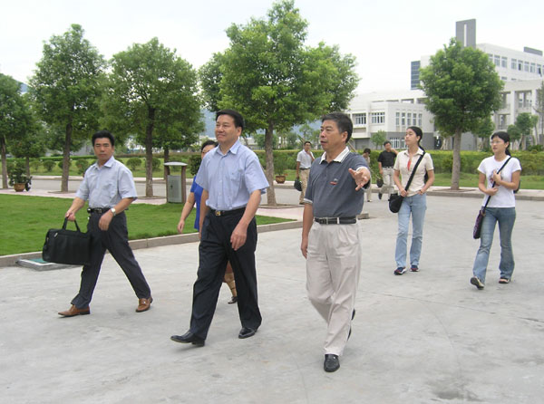我院周锦成院长陪同副市长阮晖漫步校园 9月9日上午,温州市副市长阮晖和市政协副主席谢惊春率团来到我院,慰问了我院教职员工,向我院教职员工致以节日的问候,并了解我院和教师的有关情况。陪同前来的还有市教育局副局长吴恕成。