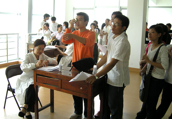 9月25日、26日,我院学生处、四方公司组织了2100多名新生进行入学体检。由于事前准备工作细致,体检工作进行得有条不紊、稳稳当当。两天来,体检医生认真细致地为每个新生做了全身检查。