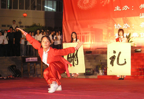 9月27日晚,2004年温州职业技术学院“迎新生·庆国庆”大型文艺晚会在图书信息大楼广场前隆重举行。为入学新生举办专场文艺晚会是我院由来已久的优良传统。本次迎新晚会由我院团委、学生会主办,赞助单位是温州电信茶山支局。