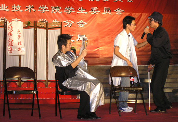 整台晚会内容涵盖了歌、舞、乐器演奏、小品、武术表演等,从演员到后台工作人员都带着一份激情投入。晚会气氛喜庆热烈,高潮迭起,其中教工的压轴节目让同学们大饱眼福,为迎新晚会赋予师生同乐的内涵。许多同学看到了平时站在讲台上的老师表演的集体舞《纤红》无不拍案叫绝。最后,电气系集体舞《雪域高原》、工商系独唱《伤痕》、人文系小品《真情家园》分别夺得冠、亚、季军。