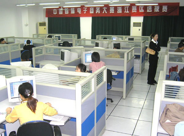 11月13日,由国家劳动和社会保障部组织的2004中国首届电子商务大赛浙江赛区选拔赛在我院拉开帷幕。此次比赛属于省级一类技能大赛。来自全省的43名“商务高手”参加了角逐,这些选手是通过了资格赛和技能赛而取得参赛资格的。其中我院代表队就有30人脱颖而出入围了此次选拔赛。此次比赛获得浙江赛区前八名的优胜选手将入围全国决赛。