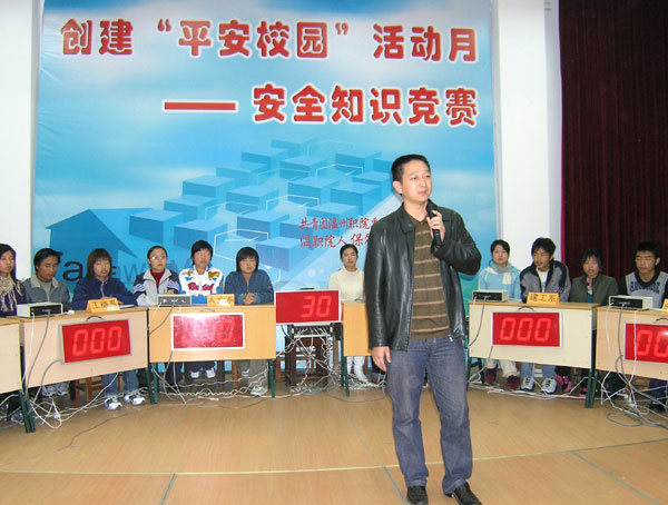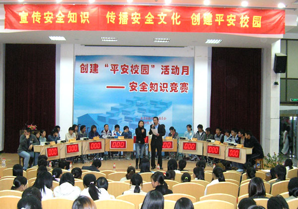 12月1日晚,由我院人保处与院团委举办的安全知识竞赛在信息楼报告厅举行。本次活动以宣传安全知识、传播安全文化、创建平安校园为主题。活动开始前,我院人保处副处长赵清弟向参赛选手以及观众介绍了安全知识的重要性,同学们应该要养成安全意识,在生活中应该加强防范意识,他希望同学们都能投身到“创建平安校园”的氛围中。