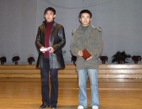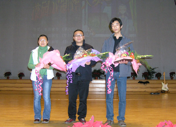 在颁奖晚会上揭晓了本次高校网络文化节所有比赛项目获奖名单。我院学子喜捧四个奖项。工商系余启明同学自创的《心灵歌曲》荣获网络文学原创大赛二等奖;电气系林文武同学获得个人主页制作大赛二等奖;计算机系张钢同学的《财会系双代会纪实》获得校园DV制作大赛三等奖;人文系夏丹丹同学 在“网络人生”为主题的高校演讲赛荣获三等奖。