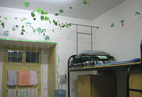财会学子把算盘挂上了床,把点钞券折叠成各式各样的形状装扮在天花板,天平构造的“资产=权益”会计公式也悄悄爬上了寝室的墙上,宿舍的六张床铺以“会计六要素”一一冠名;轻工学院的同学则自己的作品一幅幅裱好挂在宿舍的各个角落,浓郁的专业文化氛围萦绕在宿舍中……这一幕幕都是社区团工委工作人员在检查文明雅室活动评比中看到的情景。我院各系同学别出心裁的把专业知识、专业文化搬进了公寓,把公寓装扮的温馨典雅,而又不失专业特色,别有韵味。据了解,这些“金点子”大多是宿舍同学经过激烈讨论和策划而想出了,是同学们集体智慧的结晶。这些都让同在屋檐下的“一家人”更加珍惜寝室生活,更加热爱真正属于自己的“家”。