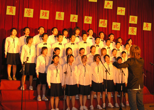 据悉,此次大合唱比赛以“发奋学习创业,立志成才报国”为主题,同时也是为了纪念抗日战争胜利六十周年。该系党总支书记蔡后界说,以班级为参赛单位举行大合唱比赛,能增强班级的凝聚力,有利于学生思想政治工作的开展,同时此次大合唱比赛也让同学们以歌唱祖国和青春的形式来表达了爱国情怀。