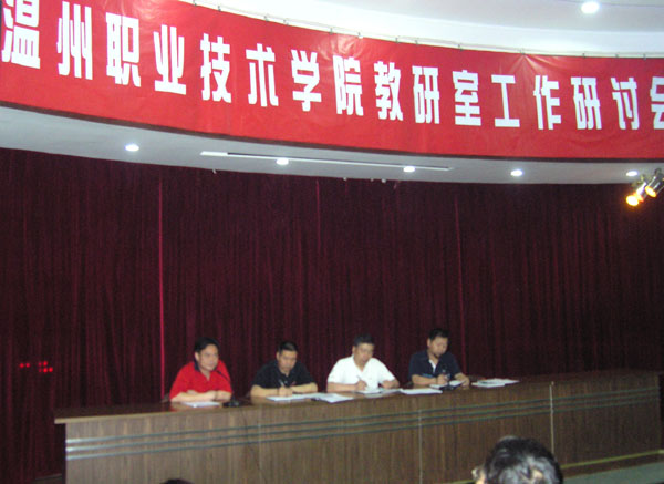 会上,教务科研处副处长童炳金就《温州职业技术学院关于进一步加强教研室建设提高教学科研能力的意见》(以下简称《意见》)讨论稿进行了说明,文秘教研室主任刘文卿、电气自动化教研室主任周有立、房地产投资与管理教研室主任卓坚红介绍了教研室工作经验。与会者就《意见》、《教研室主任工作职责》(讨论稿)、《教研室教学工作职责》等制度分组进行了讨论,交流了工作经验,就教研室、实训科的工作实践和职责分工等问题进行了探讨。各组代表就本组讨论结果在大会上作了汇报交流。