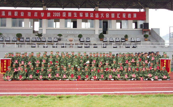 学院党委书记、院长周锦成,党委副书记倪集崇,学院副院长兰玉景和温州军分区副参谋长童裳显上校等领导出席观看了此次军训汇报表演,并为军训先进集体颁发了锦旗,给先进个人进行了表彰。