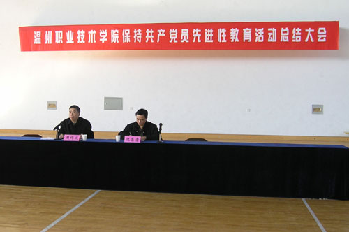 学院党委书记、院长周锦成在会上做了温州职业技术学院先进性教育活动总结报告。他在报告中指出,我院党员先进性教育活动,按照中央和省市委的统一部署,在市委巡查组的指导下,在全院各级党组织和全体党员的努力下,总体上达到了“提高党员素质、加强基层组织、服务人民群众、促进各项工作”四个目标。据各党总支(直属党支部)对先进性教育活动进行满意度测评显示,满意和比较满意率达93%。