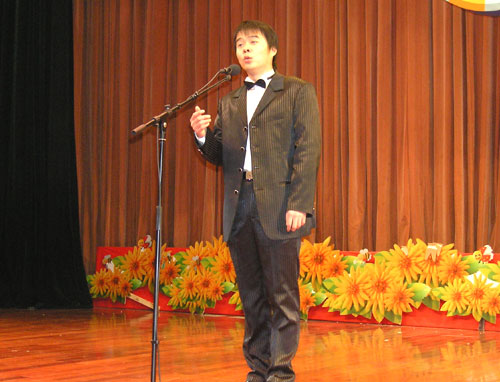 倾情演绎《祖国,慈祥的母亲》 12月17日,温州市教职工“三满意”活动歌手大奖赛在温州青少年活动中心演艺厅举行。我院计算机系辅导员白洪兴老师代表我院参加了专业组的比赛。比赛中,白洪兴老师以一曲《祖国,慈祥的母亲》(美声唱法)夺得专业组比赛的二等奖。另外,我院轻工学院副院田正老师也获得非专业组比赛的纪念奖。据悉,本次比赛由温州市工会主办,共有来自全市各高校、中小学的50多名教工参加角逐。