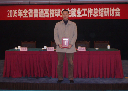 2005年浙江省普通高校毕业生就业工作总结研讨会于12月15日至16日在杭州雅兰国际大酒店举行。会议对获得浙江省普通高校毕业生就业工作优秀单位和省级毕业生就业先进工作者进行了表彰。我院被评为浙江省普通高校毕业生就业工作优秀单位;我院学生处副处长、就业中心主任郑国波老师被评为“浙江省普通高等学校毕业生就业先进工作者”。来自全省普通高校毕业生就业工作部门负责人和各市人事局、教育局毕业生就业工作部门负责人参加了会议,中共浙江省委教育工委副书记、省教育厅副厅长蒋胜祥出席了会议并讲了话。