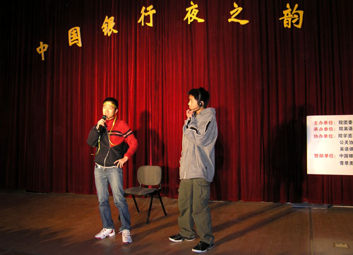 晚会一开始,一曲激情四溢的热舞顿时使晚会充满了活力。接着,一个个精心准备的节目英语节目陆续登场,节目形式多样,内容丰富,从英语独唱到英语诗歌朗诵,从英语话剧到模特走秀,每个节目都充分挖掘了同学们的艺术潜力和英语功底。同时,温州大学(筹)、浙江东方职业技术学院等兄弟院校英语俱乐部也纷纷选送节目登台亮相,促进校与校间的交流与沟通,让晚会充满了暖暖的人情味。其中,温州大学(筹)选送的英语话剧《大话西游》诙谐有趣,尽显e时代的无厘头风格,让在场的观众捧腹大笑。