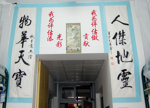 “校园中迎评的氛围越来越浓,每天都能听到别人提到‘迎评’,迎评已成为我们学习、生活中的主旋律了。”走在温职院的校园中,有同学中这样谈论着,话语中带着些紧张,也带着兴奋。在4月19日社区团工委开展的“文明雅室”评比中,一些寝室别出心裁地把“迎评”主题和装扮寝室有机结合起来,把迎评标语——“我为评估做贡献、我为评估添光彩”装扮在墙上,时刻提醒着全体寝室成员要以积极的心态迎接评估这场“大考”。
