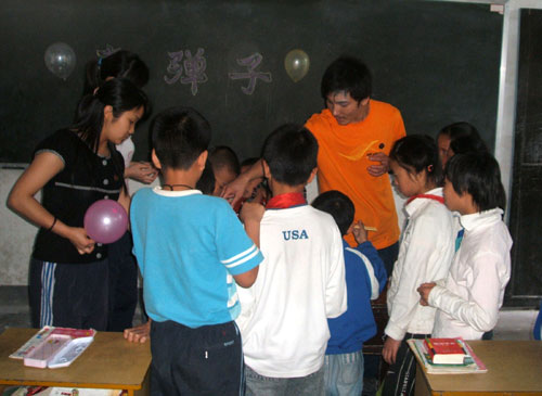 大学生们在与贫困小朋友的嬉戏玩耍中,青年志愿者们也似乎让让心灵也找回了童年的色彩。活动结束时,孩子们依依不舍地与“大朋友”们合影告别,从孩子们渴望的眼神中,志愿者深深感受到山区的贫困儿童更需要关爱,更需要充满“爱”的儿童节。
