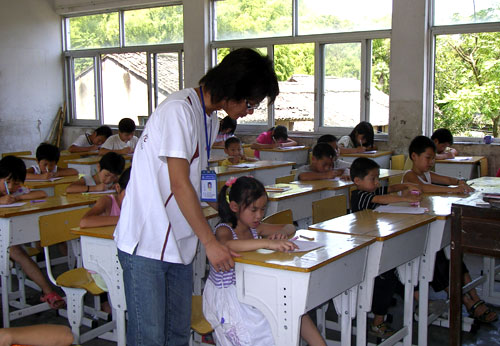 7月19日,我院团委吴建明驱车来到乐清革命老区——智仁乡看望轻工学院参加暑期实践的支教队。轻工学院在这个革命老区已经开展了一个多星期的“心系革命老区”支教活动,为革命山区的小孩子们开设了暑期第二课堂,传授音乐、美术、舞蹈等知识,并与孩子们结下了深厚的友谊。