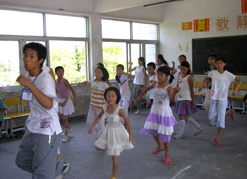 在课堂上,山区的小孩子们平生第一次接触了大学生老师给他们带来的街舞、漫画创作、手工做中国结。大学生们开辟的第二课堂受到该村村民的欢迎,村民纷纷把孩子送到了支教学生手上,短短几天,暑期期间原本安静的校园欢歌笑语,大手拉着小手一起游戏、舞蹈。小孩子们在这些天里也尽情呼吸着山外吹来的新鲜的空气。