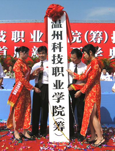 9月28日,温州科技职业学院(筹)隆重举行了挂牌仪式暨首届新生开学典礼。温州市委书记王建满、市委副书记包哲东、市人大副主任陈莲莲、副市长钱成良、冯志礼等出席授牌仪式。