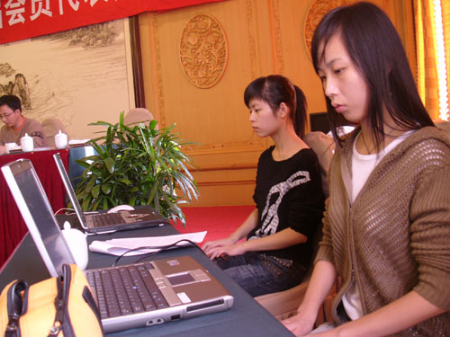 话音落,记录毕,文稿出。我院人文系学生在日前举行的温州市文化发展研讨会上向众人展示一种新练就的“独门绝技”——会议速录。尽管会议中,发言者语速飞快,但会议结束时,会上的每一句话,几乎一字不落地被人文系几位不起眼的速记学员输进了电脑。会议结束的同时,会议发言稿也就脱机而出。