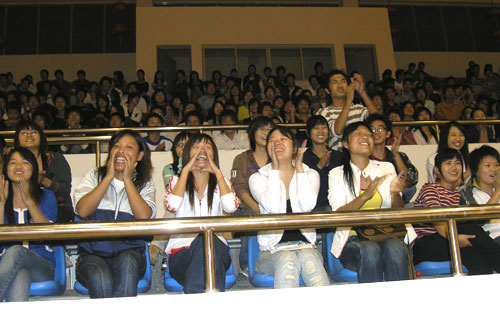 作为东道主,我院的“啦啦队”也没有闲着,他们的加油声响彻整个体育馆,为运动员发挥水平注入了强心剂。