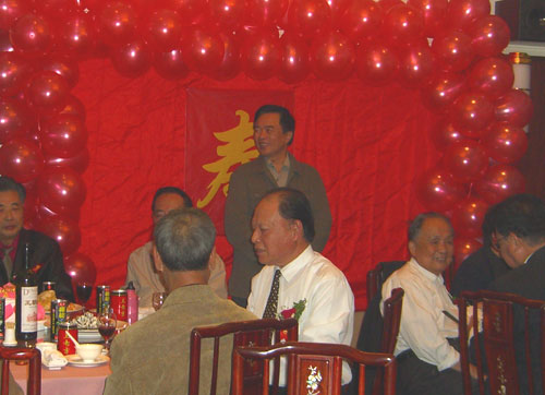 祝寿会喜气洋洋,金色的寿字在粉红色的汽球怀抱之中熠熠生辉,个个寿星胸佩鲜花、笑逐颜开,“摄影师”张世琛老师忙前忙后,高兴地为每位寿星拍照。离退休协会还专门为寿星们分发了“长寿面”礼券。大家频频举杯敬酒,互祝彼此健康长寿,生活幸福,并祝愿学校的明天更美好。