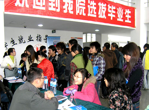 12月20日,我院轻工系在就业中心招聘大厅举办了2007届毕业生招聘专场。招聘会共吸引了50多个企业到场招贤纳士,我院500多名服装、鞋革、营销、文秘等专业的学生争相进场应聘。
