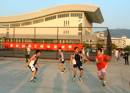 此次教工趣味篮球赛共有8支系部代表队参赛,分为A、B两个小组,进行巡回赛,每组的前两名出线。比赛的形式显得十分新颖,每队上场队员中必须是2名女教师加3名男教师,女教师每投进一个球,双倍计分。平时在篮球赛场上不常看到女教师的身影,这回纷纷披挂上阵,吸引了许多学生驻足观看,也赢得观众们阵阵掌声。这种新鲜的赛制更增加了比赛的趣味性、观赏性,同时通过比赛了也使学院各系部、处室之间增进了沟通和了解,加强了教师队伍的凝聚力。