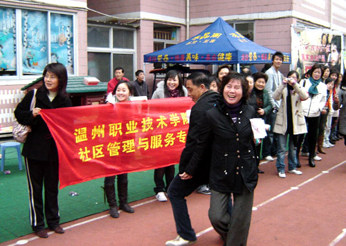 1月13日,洪殿社区举行了“ 叶同仁”杯首届活力社区趣味竞技大赛,我院人文系05级社区管理与服务专业的全体同学受邀参加了此次比赛。