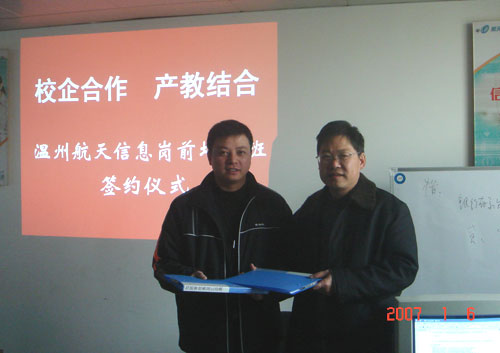 日前,由我院计算机系与温州市航天信息计算机有限公司签订协议合作联办的“航天信息岗前培训班”结束了为期一个多月的首期岗前培训,参加培训的17名计算机专业毕业生顺利结业,成为航天信息公司的“准员工”。他们再经过一轮面试后,合格者将正式成为企业的一员。