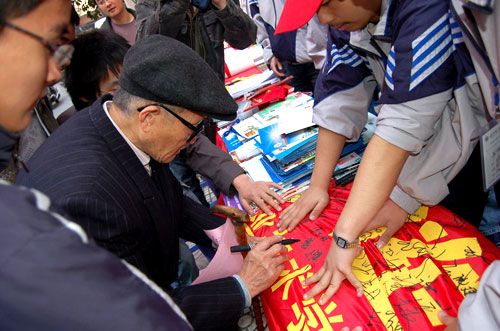 3月31日,温职院的同学们兵分三路,除了在本校区设立现场捐献点外,还分别走进温州大学和温州医学院,向大学生们宣传盲童的情况,并举行现场募捐挂历、签名活动和募集眼角膜捐献志愿者。