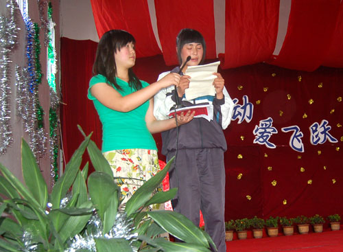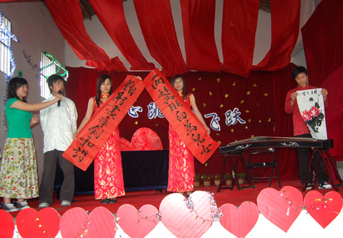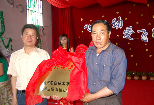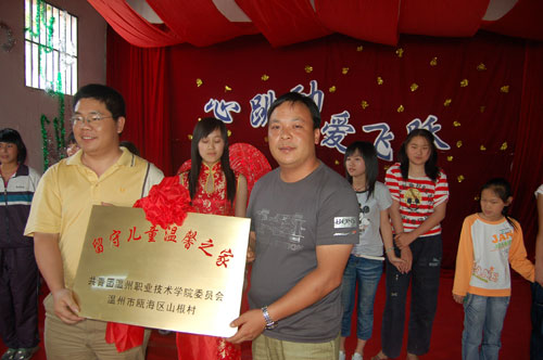 2007年5月13日是今年的母亲节。5月12日,我院50多名学生来到我院文明共建单位——茶山街道山根村,组织了村民和该村的留守儿童共同举办了一台以“心跳动、爱飞跃”为主题的文艺汇演,以联欢、游戏的形式来迎接母亲节的到来。在文艺演出之前,我院宣传部、统战部部长朱金荣和学生处处长与山根村两委领导共同为“文明共建单位”和“留守儿童温馨之家”牌匾揭牌。