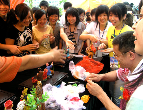 瓯绣、瓯塑、黄杨木雕、细纹剪纸、木偶戏、道情说唱……这些民间艺术形式在温州职业技术学院校园里一展示出来,就吸引了大批大批的学生前去参观。为继承和弘扬温州民间文化艺术,5月23日下午,我院人文系联合温州市文联主办了一场“温州民间工艺文化展”活动,使在校大学生近距离感受民间艺术的魅力和风采,拓展视野,提高人文素质。