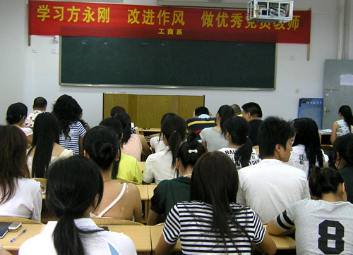 在全院上下掀起学习方永刚同志、推进“作风年”建设的热潮中,工商系党总支也积极开展形式多样的学习和教育活动。6月6日下午,工商系师生党员举行“学习方永刚、改进作风、做优秀党员教师”主题教育活动。