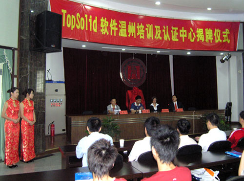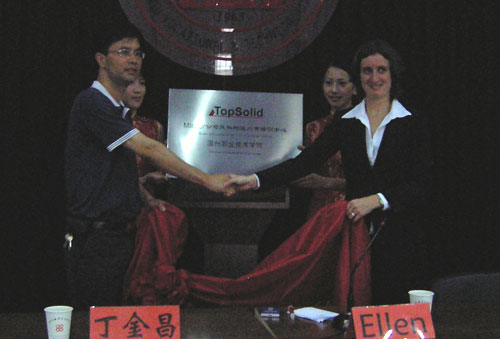 6月14日,我院在行政楼多功能厅举行了TopSolid软件培训及认证中心揭牌仪式,成了温州首家TopSolid软件培训中心。法国Missler公司市场总监Ellen女士、法国Missler公司大中国区总经理张培吉先生与我院院长丁金昌、机械系主任吴百中出席了揭牌仪式。该中心成立之后,将在今后肩负起我市模具相关行业TopSolid软件技能培训及技能等级认证等任务。