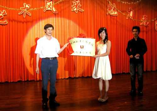筹备多月的大学生艺术团,在广大同学的翘首期盼下,于6月20日晚在学术报告厅正式成立。当日晚上,学术报告厅内喜气洋洋,我院大学生艺术团汇报表演暨成立大会在这里隆重召开。夏晓军副院长应邀观看了演出,并为大学生艺术团授牌。夏副院长指出,大学生艺术团是开展素质教育的一个重要载体,是校园文化建设的一个有机组成部分,也是宣传学校的一个重要窗口。大学生艺术团以“弘扬民族文化,倡导高雅艺术,丰富校园生活,促进文明建设”为宗旨,以培养提高学生综合素质为目的。