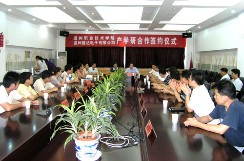 签约仪式上,丁金昌院长指出,我院大力推行工学结合,突出学生的实践能力培养,改革人才培养,实施校企合作,加强实训、实习基地建设。我院在模具制造技术教学实训车间即温州市模具技术重点实验室建设过程中,引进本地区模具制造行业定位档次较高、规模较大、管理规范、技术实力较强的企业,合作建设实训基地,并开展产学研结合工作,将实现学院和企业“双赢”的效应。丁院长还强调,此次与建达公司的合作是实现人才培养目标、促进专业建设、保持实训练基地持续良性运行、提高实训基地层次的需要,这也为我院日前成立的温州市模具重点实验室的科研工作提供了强大的后盾。