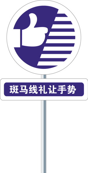 根据设计,“竖起拇指”含有对司机的尊重,对“礼让”的请求与赞许的意思,充分体现一个“礼”字。“竖起拇指示意礼让”的动作包括单手握拳,竖起拇指,手臂向左侧来车平伸,并目视来车,面带微笑,轻轻上下摆动手臂。这个手势在行人过斑马线或马路时使用,踏上人行道前,可先将手臂伸在身前,然后再移到左侧。