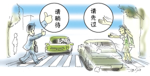 而“伸出手掌摇示先行”的动作重点在于“伸掌”与“摇”。这个动作既可以由行人使用,示意车辆先行,也可以由司机使用,示意行人先行。不同于往常常见的快速挥手示意“快行”的地方在于,手掌应伸平,掌心微朝上,伸于身前,朝行人行走方向或来车行使方向,手掌轻划一弧线,做传统的“请”的动作,别忘了面带微笑,让动作充满“礼让”。