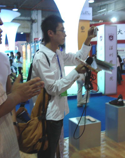 10月26日,被媒体誉为“科技盛会”的温州轻工博览会在市区会展中心开幕,一楼高校展区人来人往,好不热闹,吸引着不少市民前来观看温州高校研发的产品。