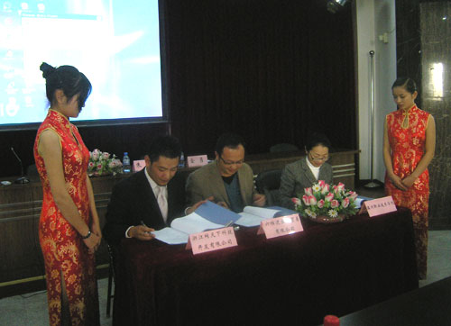 11月21日,我院与福建建阳市六维进出口贸易有限公司、浙江网天下科技开发有限公司三方签定协议,在我院校园内建立共同的国际商务实训基地。学生可以在真实的外贸平台上进行洽谈业务、制作单证等。我院副院长王向红、六维进出口贸易有限公司总经理朱凌、网天下公司行政总监金勇等出席了签约仪式。