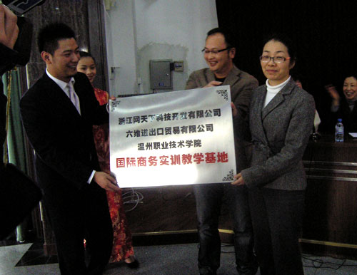 根据协议,福建建阳市六维进出口贸易有限公司为温职院学生开展进出口贸易和对外代理业务提供贸易平台;网天下公司将为温职院国际专业学生免费提供教学及实际所需的外贸软件和电子商务平台,并为大学生提供多样化课程培训,例如,如何拓展国际电子商务和国际市场、国际贸易实战技巧研讨、营销知识及技巧、就业指导等。这样该实训基地就具有了真实性的商务操作,学生不用到外贸公司,在校园中就接触到完全企业化、“真刀真枪”的外贸实际操作。