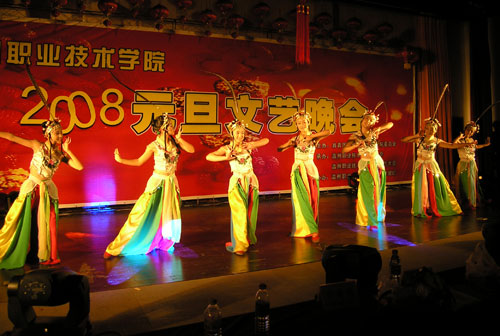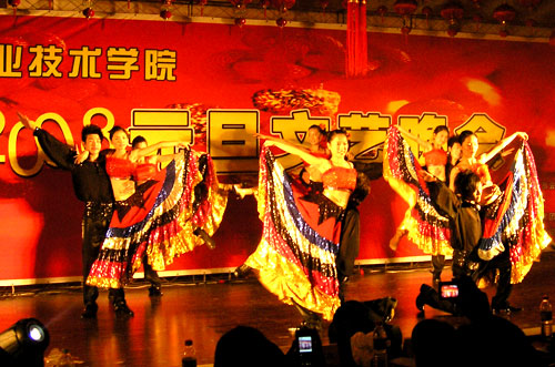 这是全校师生的大联欢,全院各系纷纷选送节目登台亮相,学院大学生艺术团更是把许多精品节目展现出来,展现出我院近年来在文艺方面的丰硕成果。小品、群舞、双簧、诗歌朗诵、武术、笛子独奏、萨克斯演奏,晚会节目类别丰富,形式多样。大学生们载歌载舞,歌唱生活,赞美祖国。轻工学院的小品《前进模特队》把小品和模特表演融合在一起,充分展现出同学们在节目方面的策划和创新能力,最终夺魁。电气系群舞《俏花旦》和财会系群舞《西班牙斗牛士》获得二等奖。