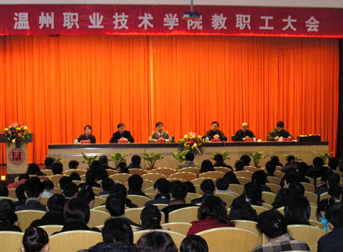 2008年是我院国家示范性建设的攻坚年,为总结2007年建设工作,精心部署新学期工作,统一思想、提高认识、坚定目标,学院于2月24日上午召开了全院教职工大会,提出新学期工作的指导思想:以科学发展观为指导,深入贯彻落实教育部教高〔2006〕16号文件精神,以国家示范性高职院校建设方案和任务书为行动指南,全面推进“三个示范”建设,努力提升学院综合实力和办学水平,为区域经济发展做出新的贡献。院长丁金昌总结了上学期学院各项工作,提出了学院存在的主要问题和面临的挑战,并高屋建瓴提出了新学期的工作部署。党委副书记倪集崇主持会议。